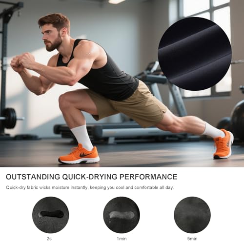 • Premium Fabric Blend for Durability: This compression shirt men is made from 80% polyester and 20% spandex, a blend that offers the ideal mix of sturdiness and stretch. As a top-quality mens tank top, it maintains its shape through repeated use and washes, ensuring long-term performance for all your activities.​