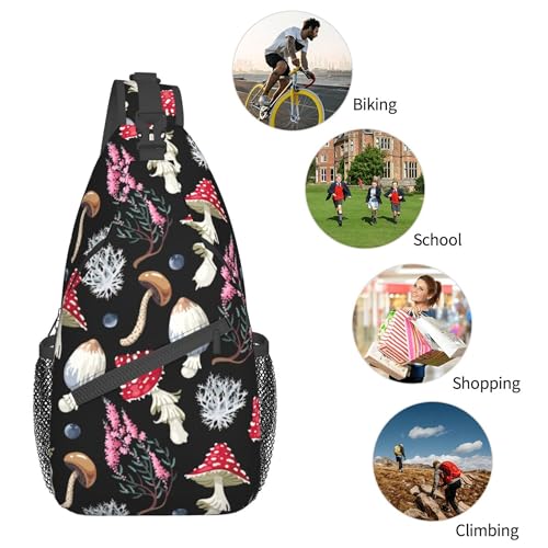 HOT ! autumn fall leaves cool mushrooms Small Crossbody Sling Backpack Anti Theft Backpack For Traveling Chest Shoulder Bag