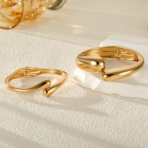 • PREMIUM DESIGN: Set of 2 elegant gold bangle bracelets featuring a chunky waterdrop-inspired cuff design for a bold statement look