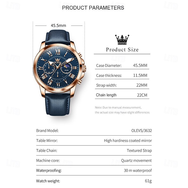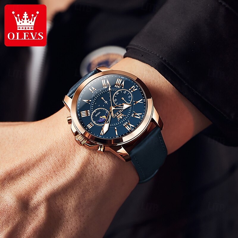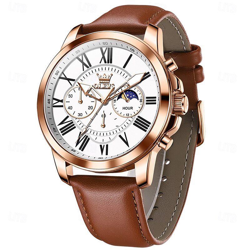$41.99 - OLEVS Men Quartz Watch Outdoor Sports Fashion Wristwatch Moon phase Luminous Waterproof Decoration Leather Watch 2025. Shop for cheap Quartz Watches online? Buy at lightinthebox.com on sale today!