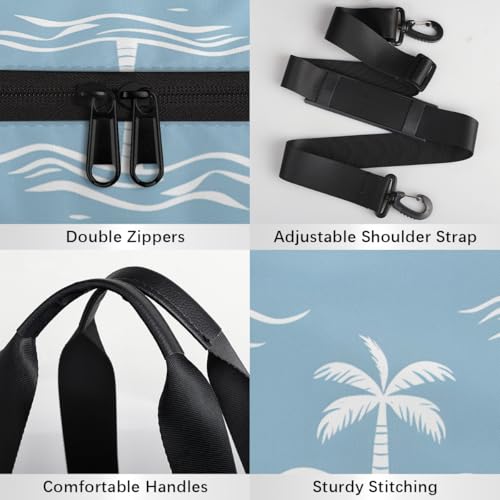 More information about Coconut Tree Sky Blue Round Barrel Sports Fitness Bag, Travel Luggage Bag, Reusable Handbag, Suitable For Men and Women