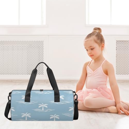Coconut Tree Sky Blue Round Barrel Sports Fitness Bag, Travel Luggage Bag, Reusable Handbag, Suitable For Men and Women 7