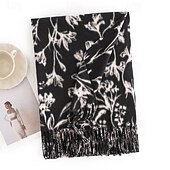 Women's Rectangle Scarf Street Daily Date Black Orange Scarf Flower 12