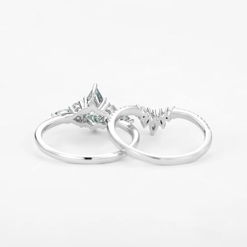 Moss Agate Ring for Women Customized 925 Sterling Silver/10K/14K/18K Gold Vintage Moss Agate Moissanite Engagement Wedding Set Ring Jewelry Gifts 7