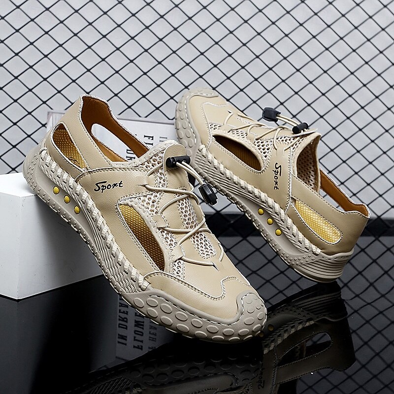 HOT ! Men's Brown Lace-up Casual Sneakers with Mesh Design and Comfortable Cushioning for Everyday Wear