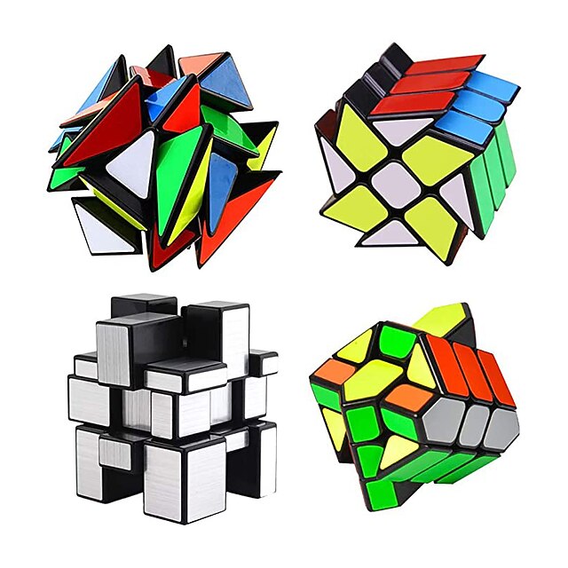 HOT ! 4-Pack QiYi Cube Set - Included 3x3 Fluctuation Angle Puzzle Cube - 2x3 Wheel Puzzle Cube - 3x3 Mirror Puzzle Cube 6 Color - 3x3 Square King Puzzle Cube