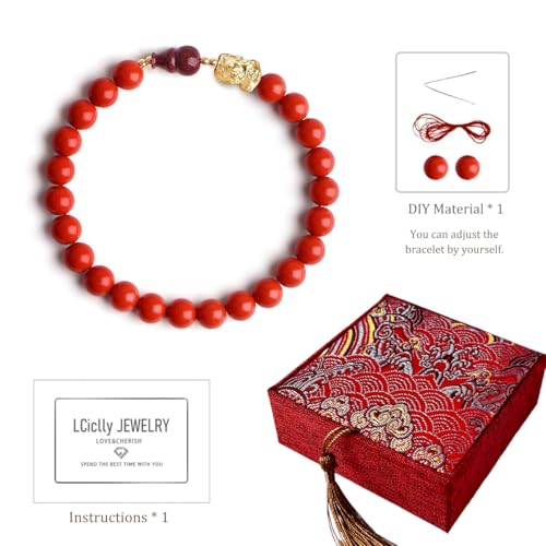 HOT ! L&C Feng Shui Wealth Bracelets for Woman - 8MM Red Cinnabar Gourd Dragon Pi Xiu Sterling Silver Stretch Adjustable Beaded Bracelets for Woman Protection Bring Luck Prosperity Attract Money