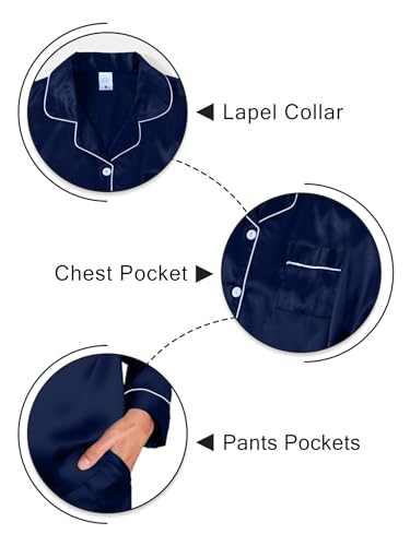 IFFEI Men's Silk Pajama Set Button Down Long Sleeve Shirts and Pants 2 Piece Matching Pjs Set with Pockets 2