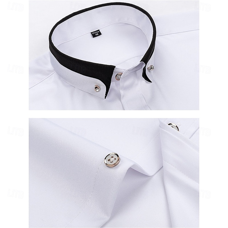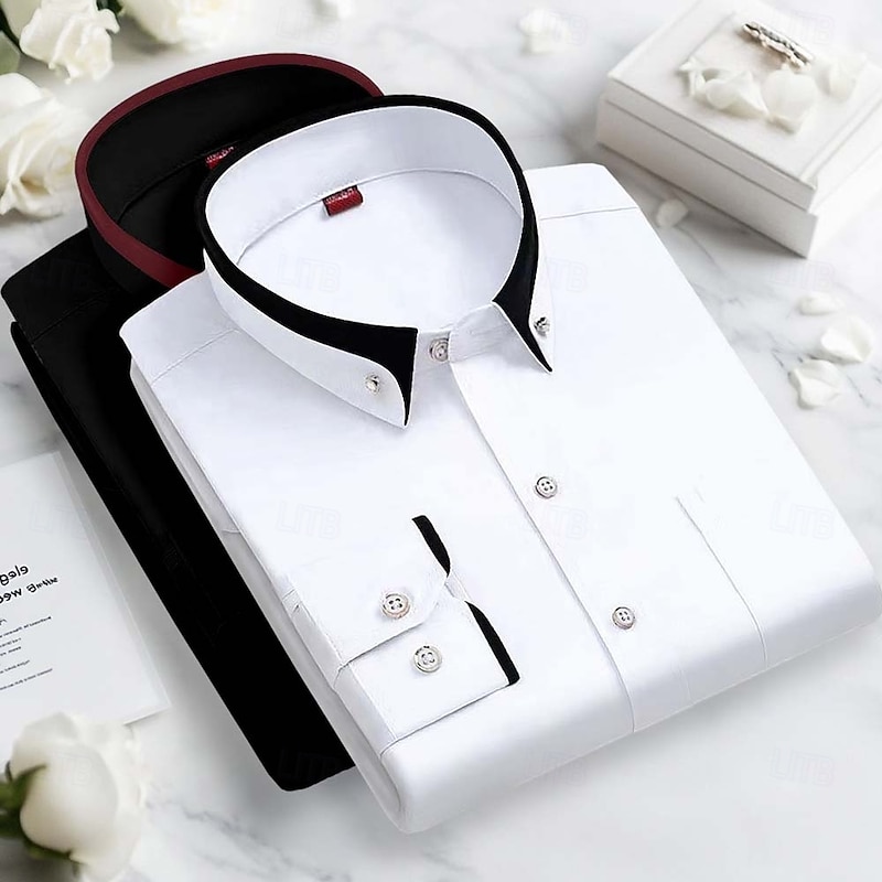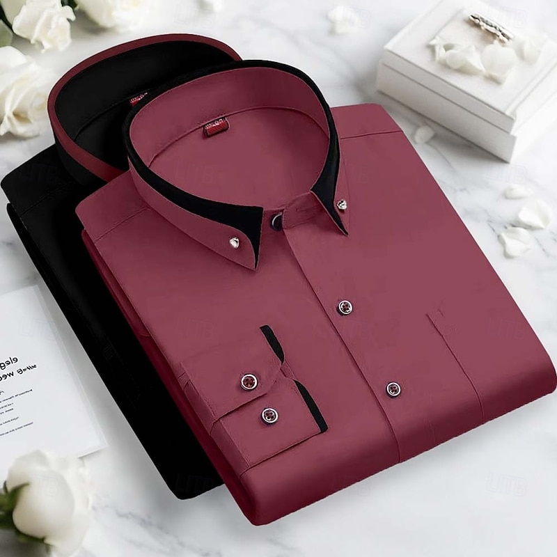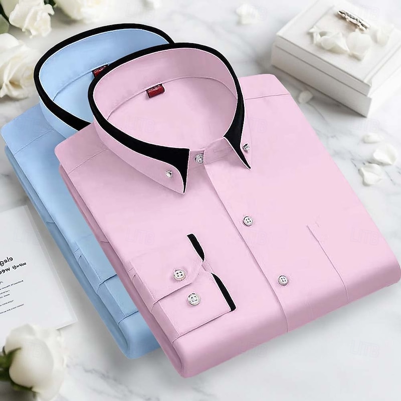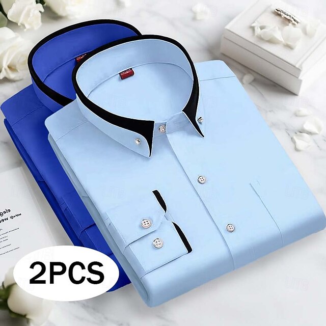 More information about Men's Dress Shirt Button Down Shirt Non Iron Shirt Solid / Plain Color Wedding Business Pink+Purple Navy blue+black Blue+Navy Blue White+Black Long Sleeve Turndown All Seasons Clothing Apparel