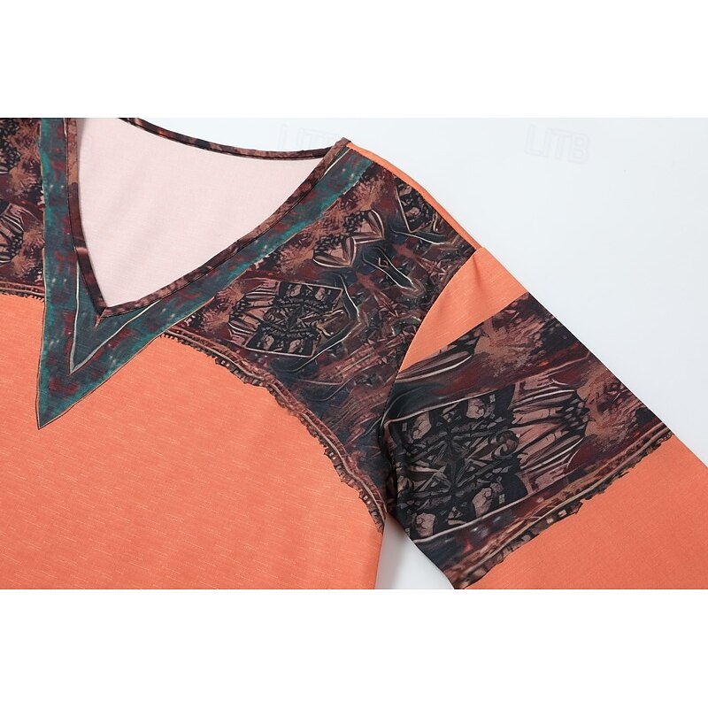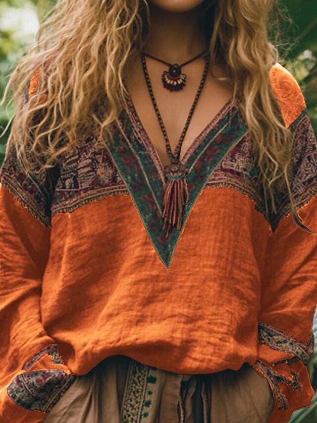 More information about Women's Boho Shirt Blouse Flower Modern Boho Long Sleeve V Neck Regular Tops Holiday Going out Print Black Red Orange Dark Gray Apricot Summer