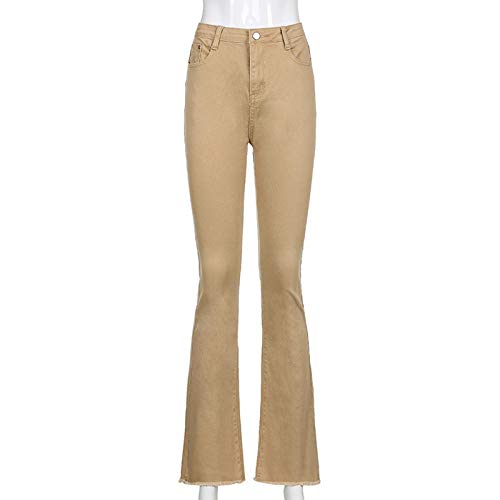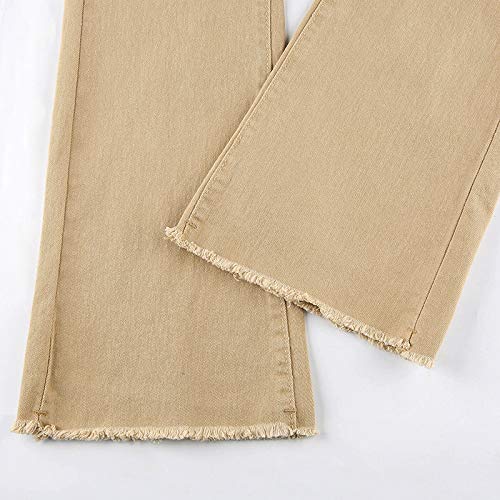 HOT ! Women Button Up Bell Bottom Jeans Ripped Flare Fitted Denim Pants Size (Khaki, S)