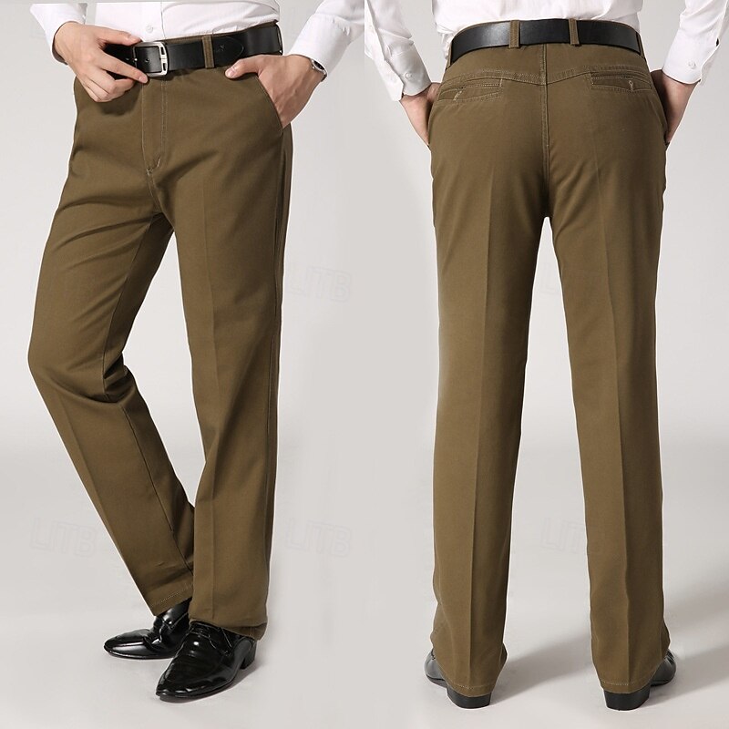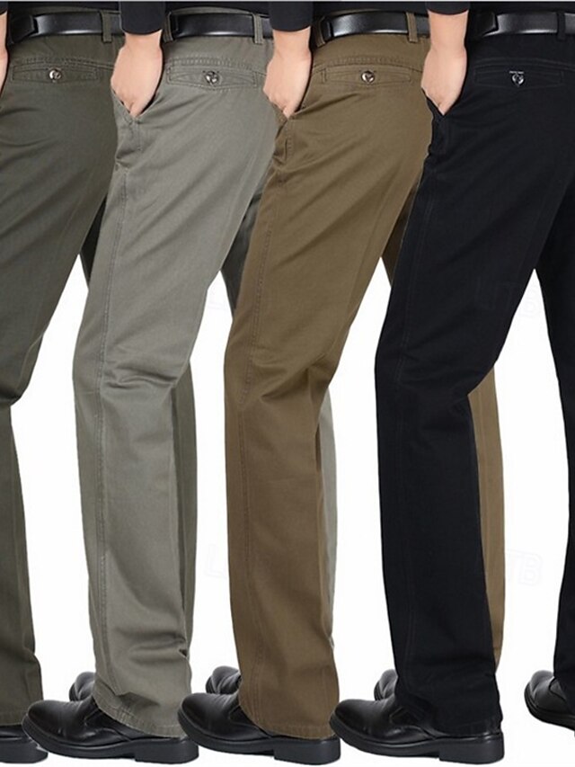 More information about Men's Dress Pants Trousers Chinos Buttons Pocket Solid Color Comfort Formal Party Work Fashion Classic Style ArmyGreen Black Micro-elastic