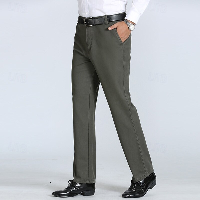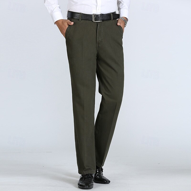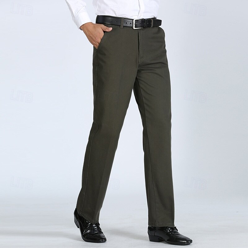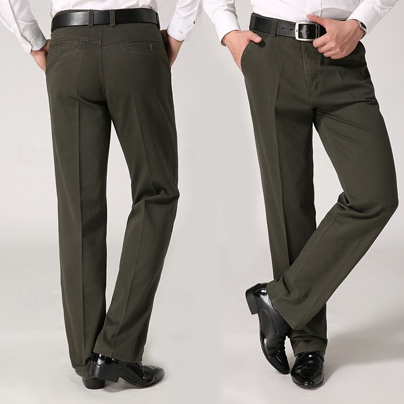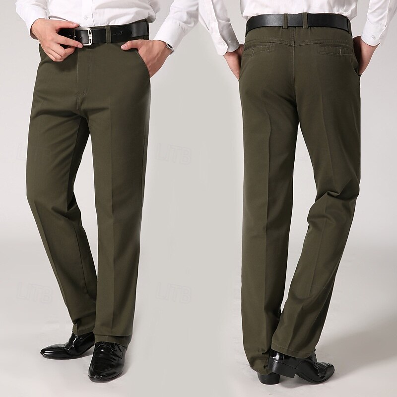 Men's Dress Pants Trousers Chinos Buttons Pocket Solid Color Comfort Formal Party Work Fashion Classic Style ArmyGreen Black Micro-elastic 21
