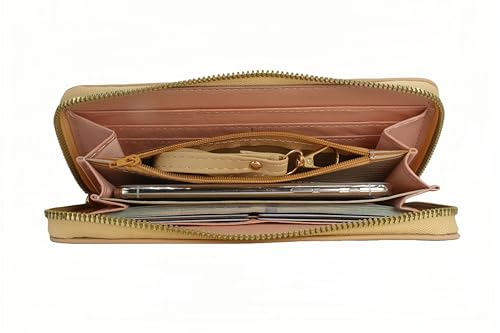 • Advanced construction: Made of high-quality apricot colored synthetic leather, durable stitching, and smooth gold zipper closure