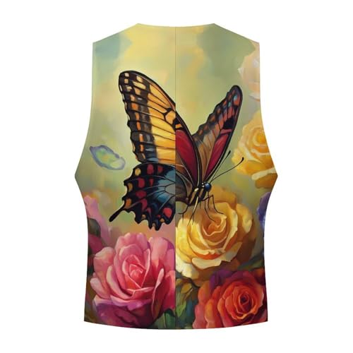 Butterfly Rose Men's Suit Vests Business Formal Dress Vest V-Neck Waistcoat for Wedding Casual 1