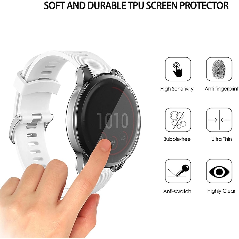Highlights 1. Waterproof Full Coverage: Our watch case and screen protector fit perfectly with Garmin Vivoactive 4, Venu 2 45mm, Vivoactive 4S and Venu 2s 40mm models. Featuring a 3D curved edge and complete coverage design, this product offers full protection against water droplets. 2. Perfect Protective: Our protector cases cover all sides and corners of your watch, making your Garmin Vivoactive 4, Venu 2 45mm, Vivoactive 4S and Venu 2s 40mm watch completely scratch-proof, shockproof and anti-collision, providing perfect protection for your beloved device. 3. High Quality Soft TPU Material: Made with soft TPU material, this case provides full protection against any damage, while also ensuring that it doesn't add much bulk to the watch. You can easily access all buttons, and it won't fall off during your intense workout sessions - giving your watch an elegant and luxurious look. 4. Don't Need To Take Off To Charge: Enjoy our easy-to-install and take-off design that isn't just protective, but also convenient. You don't need to remove your Garmin Vivoactive 4, Venu 2 45mm, Vivoactive 4S and Venu 2s 40mm band when installing or charging the case.