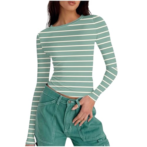 T Shirt for Women Summer Fall Long Sleeve Boat Neck Tight Baby Tees Striped Tops Shirts Women 2025 2