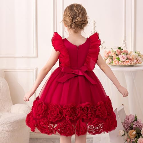 • ZVZIO Sleeveless Tulle Dress For Girls, Featuring Delicate 3D Floral Embroidery And The V-neck Design For Weddings