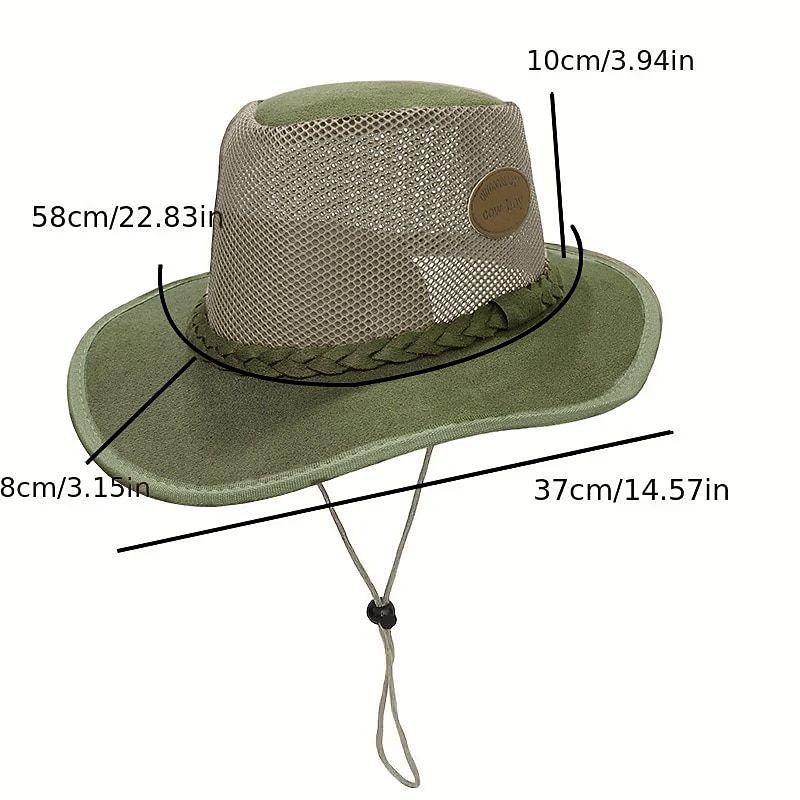 Highlights [Fabric]: Crafted from a durable polycotton blend, these men's hats feature a mesh crown that ensures breathability and comfort during warm weather. The material combination gives a lightweight feel, making these hats perfect for extended wear. [Fit]: Designed with a wide brim, these hats offer excellent sun protection while adding a stylish and modern touch to your outfit. Versatile and functional, they suit various head sizes with an adjustable fit ranging from 55-60 cm. [Design Highlights]: The hats boast a chic, braided leather band that circles the crown, adding a touch of sophistication. The mesh design not only enhances ventilation but also contributes to a contemporary and sleek look. [Occasions]: These stylish hats are perfect for a variety of settings, including outdoor adventures, holidays, and casual outings. Whether you're heading to the beach or enjoying a day in the sun, these hats offer both style and functionality. [Size Recommendation]: Available in a one-size-fits-all range from 55-60 cm, these hats accommodate different head sizes with ease, ensuring a comfortable and secure fit for most men.