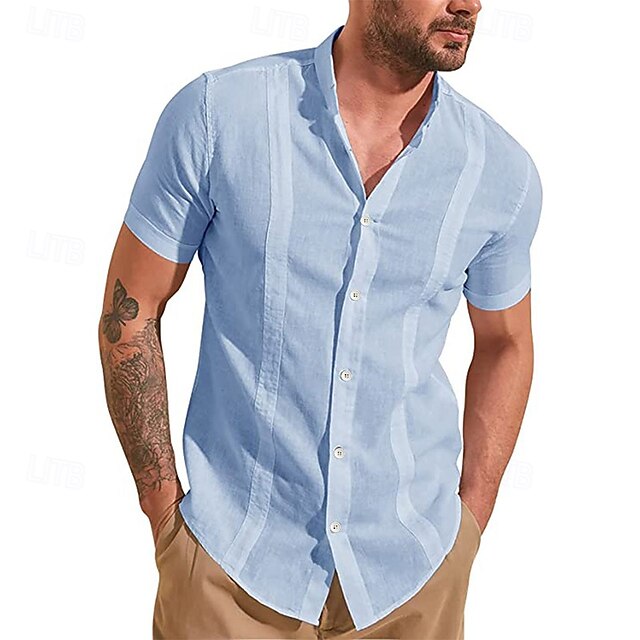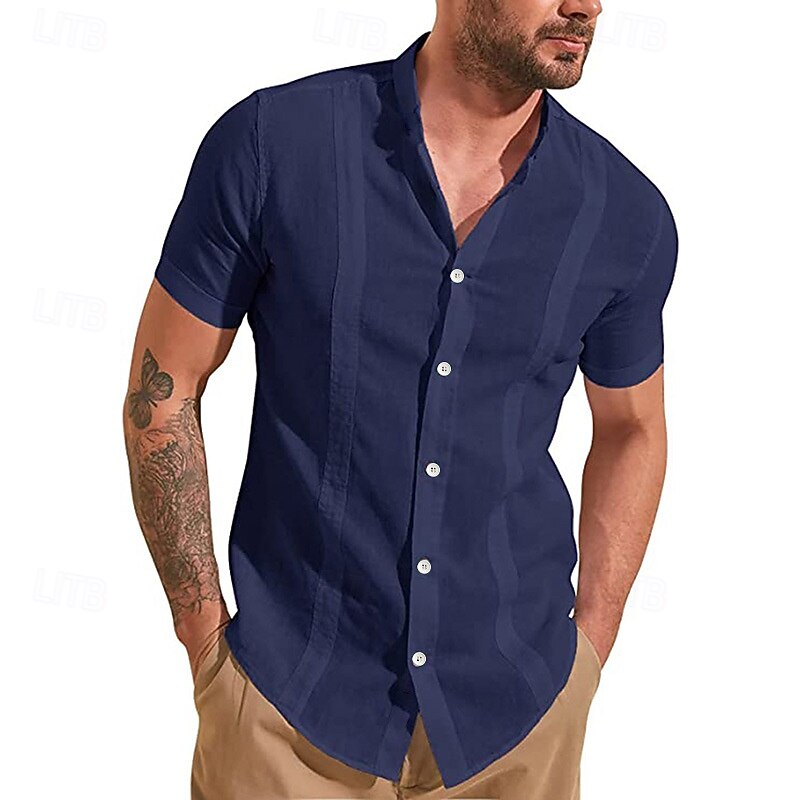 More information about Men's Guayabera Shirt Summer Shirt Casual Shirt Button Up Shirt Black White Dark Navy Green Light Blue Short Sleeve Solid / Plain Color Lapel Vacation Hawaiian Clothing Apparel Polyester Fashion