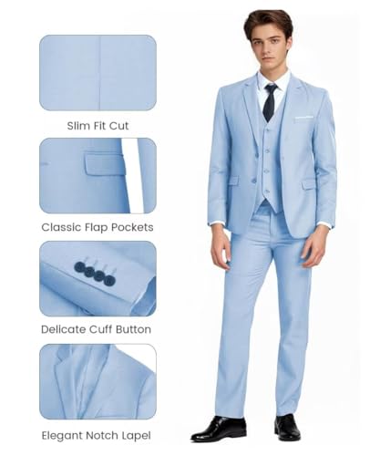 More information about Men's Suit Slim Fit 3 Pieces Suit Set Two Button Solid Blazer Business Wedding Party Prom with Tie