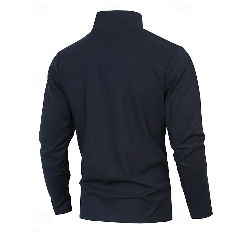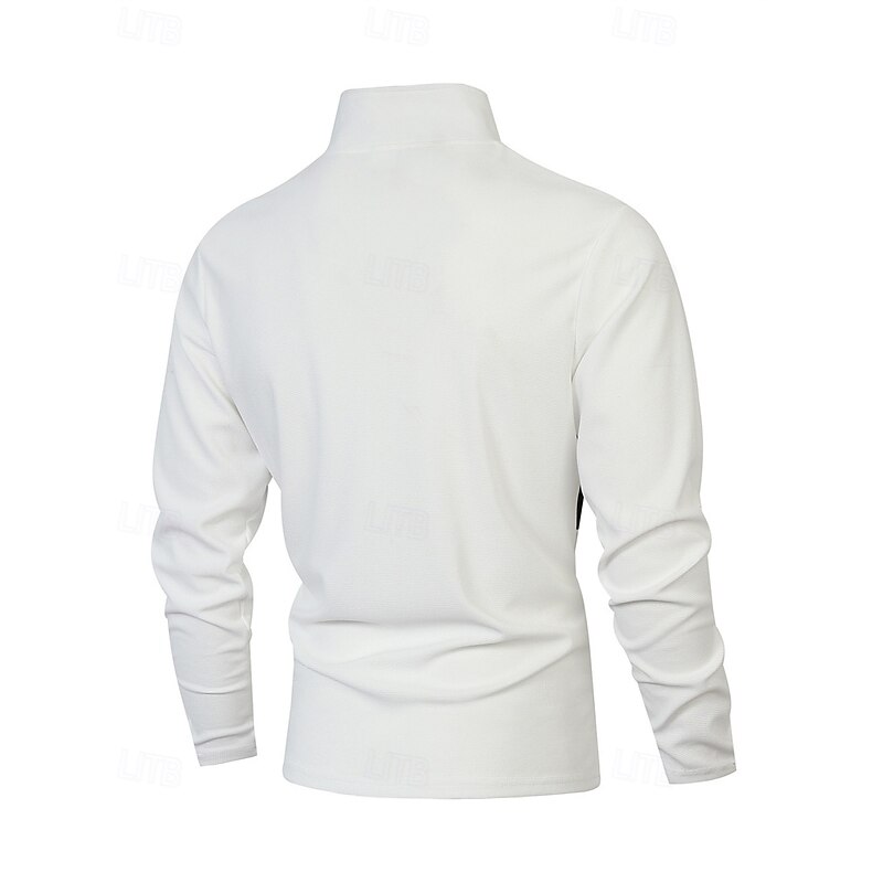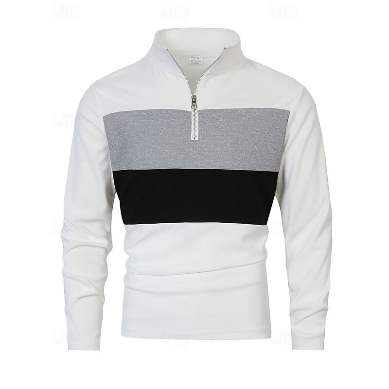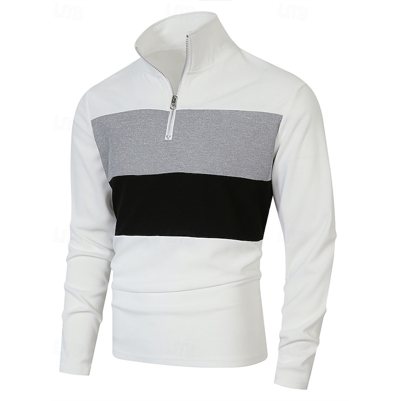 Highlights - Perfect for both spring and fall seasons - Made of high-quality polyester - Features long sleeves for added comfort - Specifically designed for men - Basic yet stylish polo shirt - Ideal for dates or casual outings - Unique color block and patchwork design - Quarter zip neckline with added zipper detail
