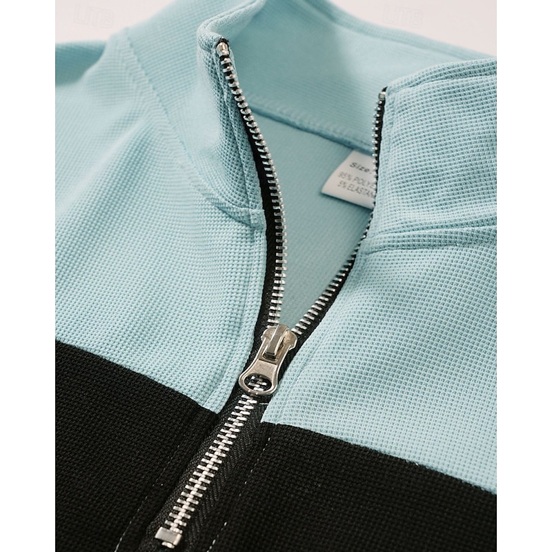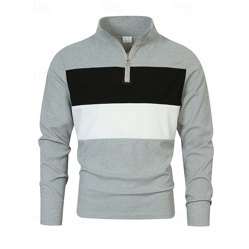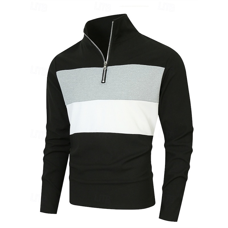 More information about Men's Polo Shirts Quarter Zip Polo Daily Wear Date Quarter Zip Long Sleeve Fashion Basic Color Block Patchwork Zipper Spring Fall Regular Fit Black White Navy Blue Gray Light Blue Polo Shirts