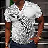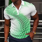 Highlights [Fabric] : Crafted from a blend of breathable and lightweight materials, this men's polo shirt ensures ultimate comfort and allows ease of movement, making it an ideal choice for any season. [Fit] : The slim fit design accentuates the physique, offering a modern and flattering silhouette that enhances the wearer's body shape. [Design Highlights] : Featuring a dynamic 3D geometric spiral print, this polo shirt stands out with its striking blue and white pattern. The classic collared neckline and button placket add a touch of sophistication, while the short sleeves provide a casual look. [Occasions] : Perfect for a range of occasions, from casual outings and vacations to formal and festival events. This versatile polo shirt blends style and functionality effortlessly, catering to diverse fashion needs. [Size Range] : Available in a variety of sizes from S to 3XL, ensuring a suitable fit for a wide range of body types. Choose from colors like Blue, Green, Gray, and Yellow to match your personal style.