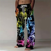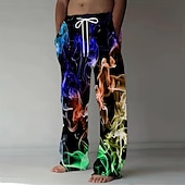 Men's Colorful Smoke Trousers Baggy Pants Casual Pants Mid Waist Fashion Casual Holiday Streetwear Elastic Drawstring Waist Linen-Like Pants with Pockets Summer Spring 3D Print Red Blue Purple 10