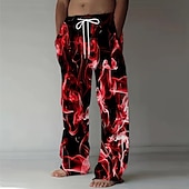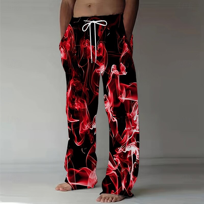 Men's Colorful Smoke Trousers Baggy Pants Casual Pants Mid Waist Fashion Casual Holiday Streetwear Elastic Drawstring Waist Linen-Like Pants with Pockets Summer Spring 3D Print Red Blue Purple 11