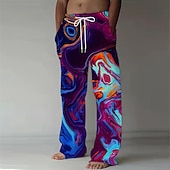 Men's Colorful Smoke Trousers Baggy Pants Casual Pants Mid Waist Fashion Casual Holiday Streetwear Elastic Drawstring Waist Linen-Like Pants with Pockets Summer Spring 3D Print Red Blue Purple 6