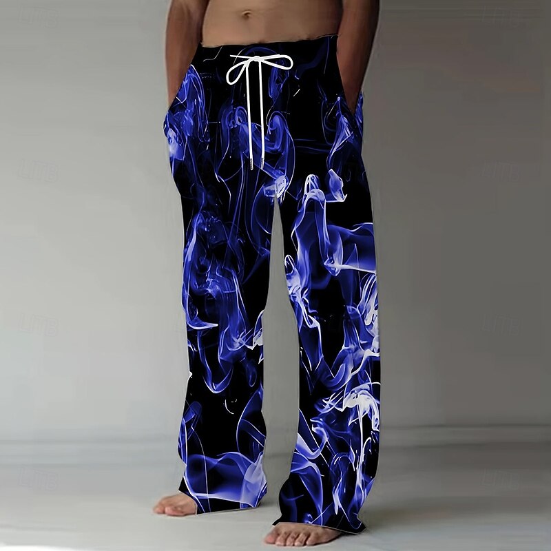 Men's Colorful Smoke Trousers Baggy Pants Casual Pants Mid Waist Fashion Casual Holiday Streetwear Elastic Drawstring Waist Linen-Like Pants with Pockets Summer Spring 3D Print Red Blue Purple 3
