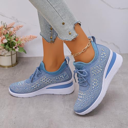 HOT ! Women's Glittery Rhinestone Fashion Breathable Wedge Sneakers, Orthopaedic Mesh Platform Sneakers Sparkly Bling Wedding Dressy Tennis Shoes for Bride