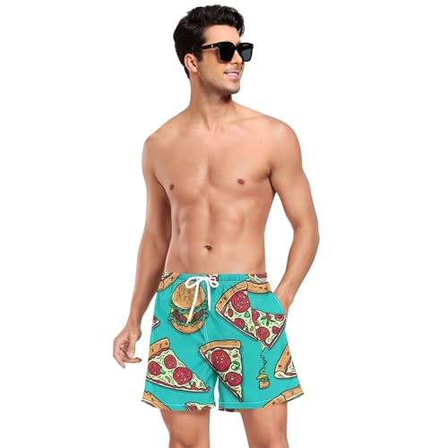 HOT ! xigua Cartoon Pizza Mens Swim Trunks with Liner, 5 inch Quick Dry Mens Boardshorts for Beach