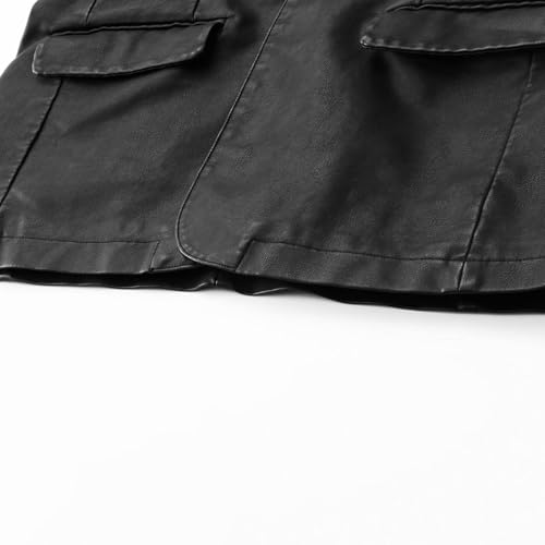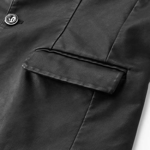 Men's Casual Notched Collar Blazers One Button Slim Fit Moto Faux Leather Blazer Coat Long Sleeve Sport Suit Jacket 4