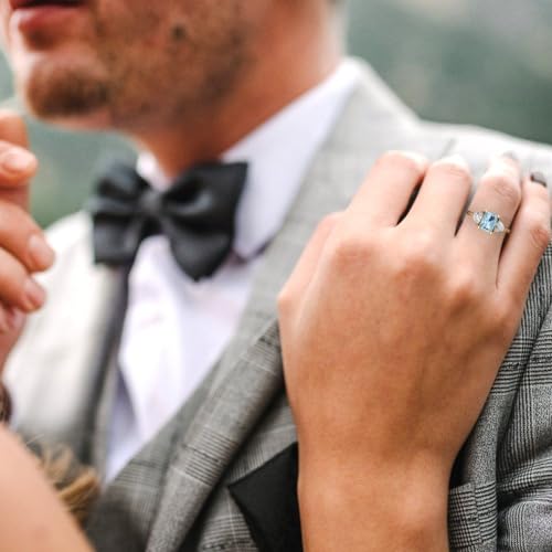 2.82ct Emerald Cut Natural Aquamarine 18K Yellow Gold Three-Stone Wedding Engagement Bridal Promise Ring 5