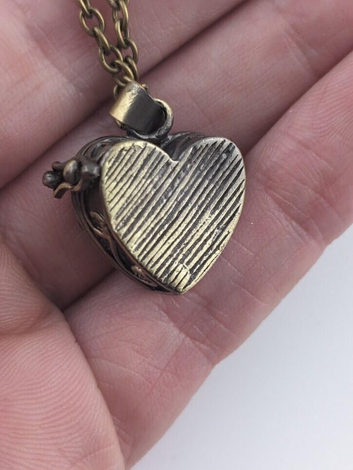 Bronze Heart Shaped Locket little prayer box pendant on 20" long chain necklace 4