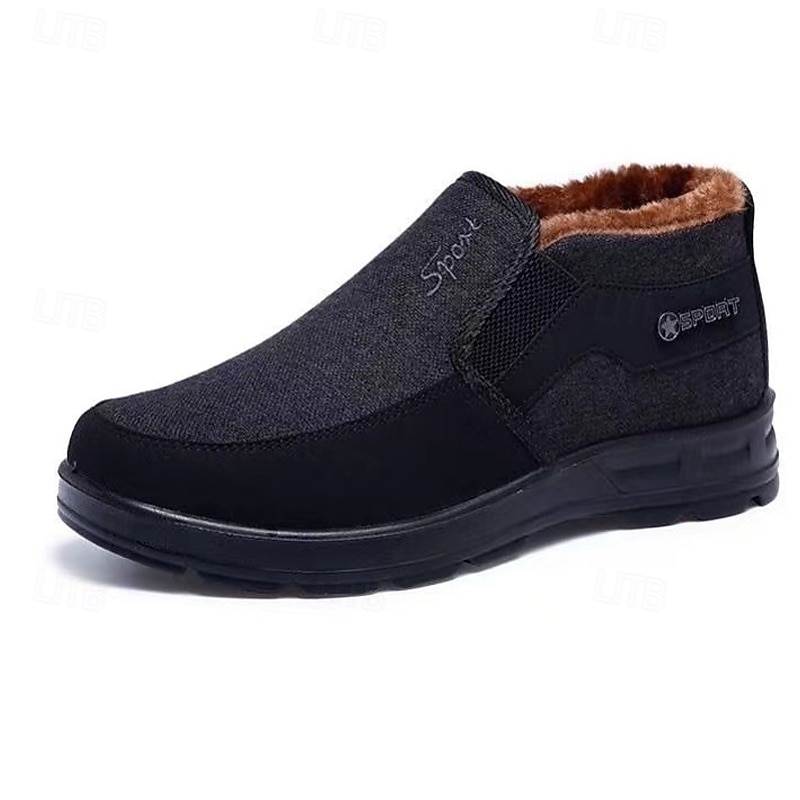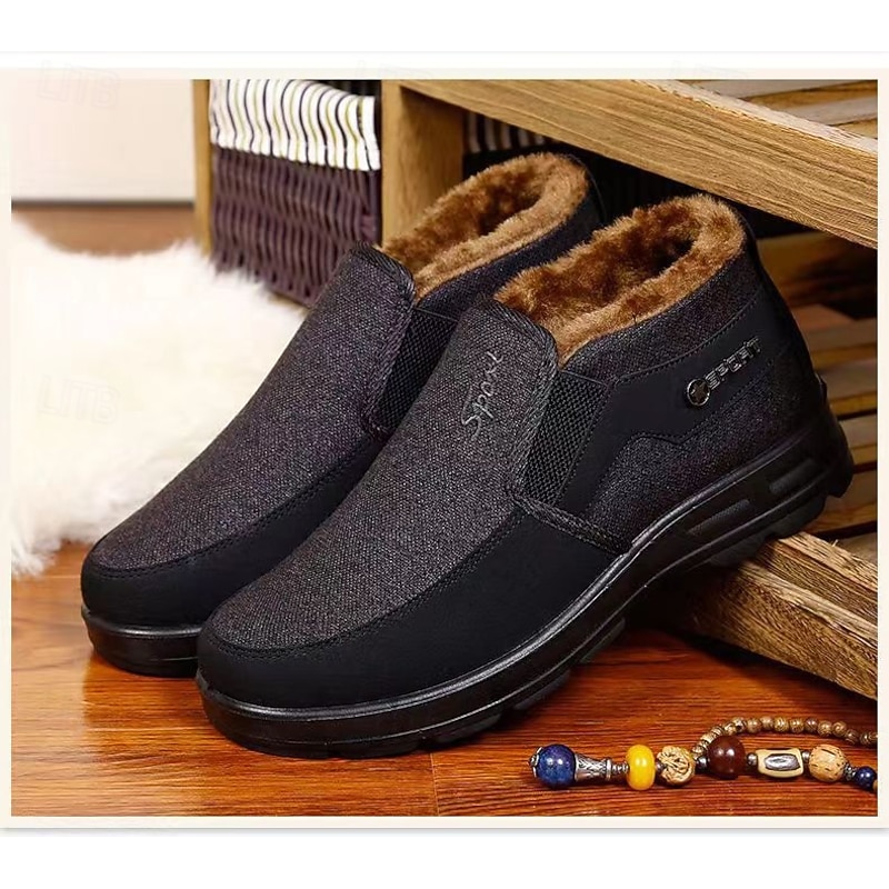 Highlights [Fabric and Construction]: Crafted with a combination of PU leather and fabric, these men's winter slip-on boots offer both durability and water-resistant protection, making them suitable for cold and wet weather conditions. [Silhouette and Style]: Designed with a sleek, round-toe silhouette, these boots confidently balance style with functionality, featuring a sophisticated dark brown exterior enhanced by a subtle textured pattern. [Design Highlights]: The interior is lined with plush faux fur, providing exceptional warmth and coziness. The slip-on design incorporates elastic side panels for easy wear and a secure fit, while the sturdy rubber outsole ensures excellent grip and traction across various surfaces. [Occasions]: Ideal for everyday winter wear, these boots are perfect for casual outings, weekend adventures, and even relaxed indoor settings, keeping your feet warm and comfortable throughout the season. [Size Range]: Available in sizes ranging from US7 to US12, these boots accommodate a broad spectrum of foot sizes, ensuring a perfect fit for everyone.