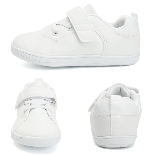 WateLves Toddler Little Kid Wide Barefoot The First Walking Shoes Girls Boys Leather Uniform Dress Shoes Lightweight Splay Naturally Minimalist Sneakers (White, 25) 6