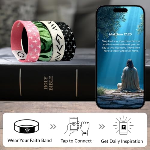 • INSTANT SCRIPTURE ACCESS - NO APP NEEDED: Tap this Christian bracelet against your smartphone to instantly reveal inspiring Bible verses. No apps, no charging—God's Word is just one touch away. Works with most smartphones including iPhone and Android devices for daily devotionals on the go.