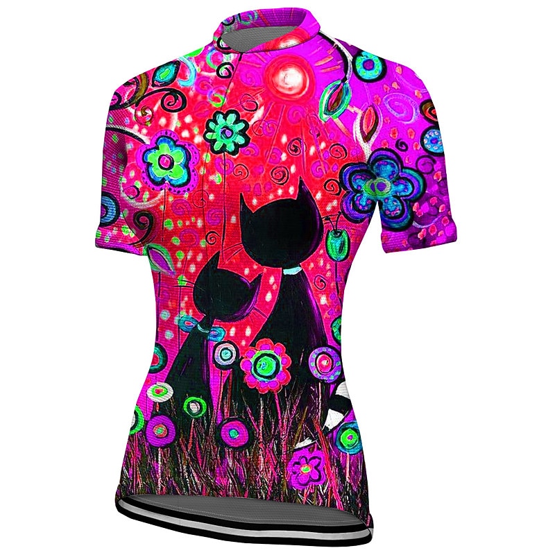 Women's Cycling Jersey Graphic Floral Botanical Short Sleeve Bike Jersey Top with 3 Rear Pockets Mountain Bike MTB Road Bike Cycling Quick Dry Reflective Strips Back Pocket Moisture Wicking Sports 7