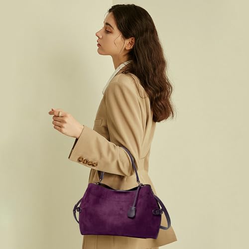 Women Faux Suede Tote Hobo Handbags Vintage Belted Top-handle Genie Leather Work Shoulder Bags 7