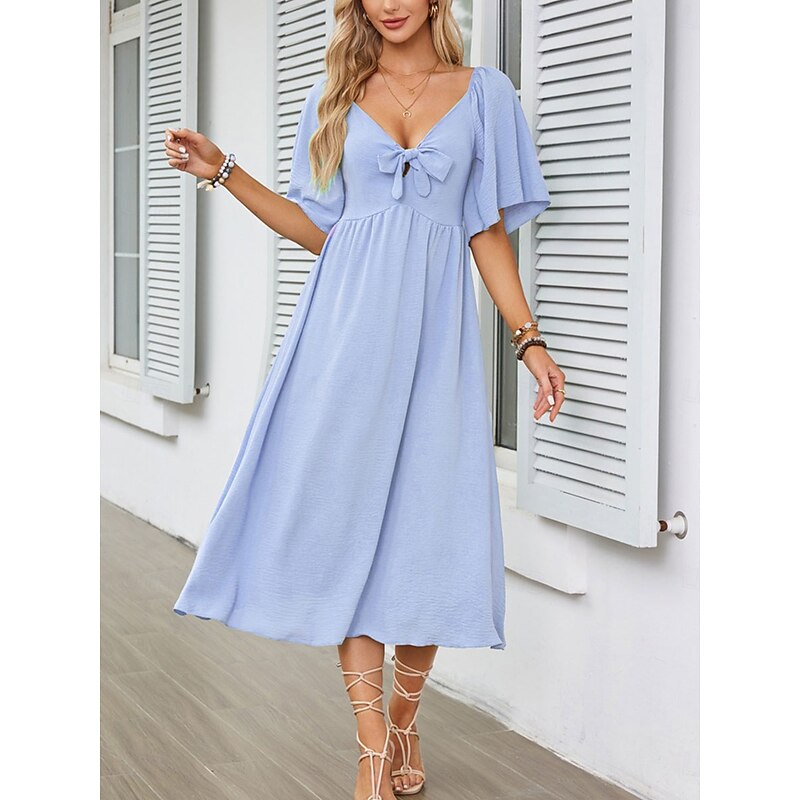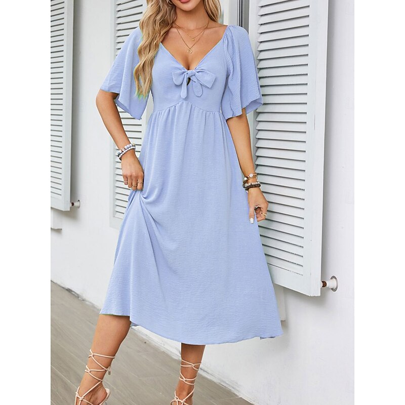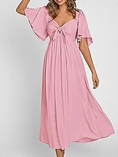 More information about Women's Long Dress Maxi Dress Casual Dress Cocktail Dress Wedding Guest Dress Chiffon Dress Cute Stylish Casual Vacation Casual Daily Regular Fit Plain Short Sleeve V Neck White Pink Blue Apricot