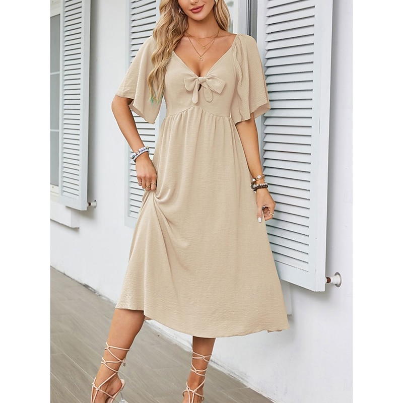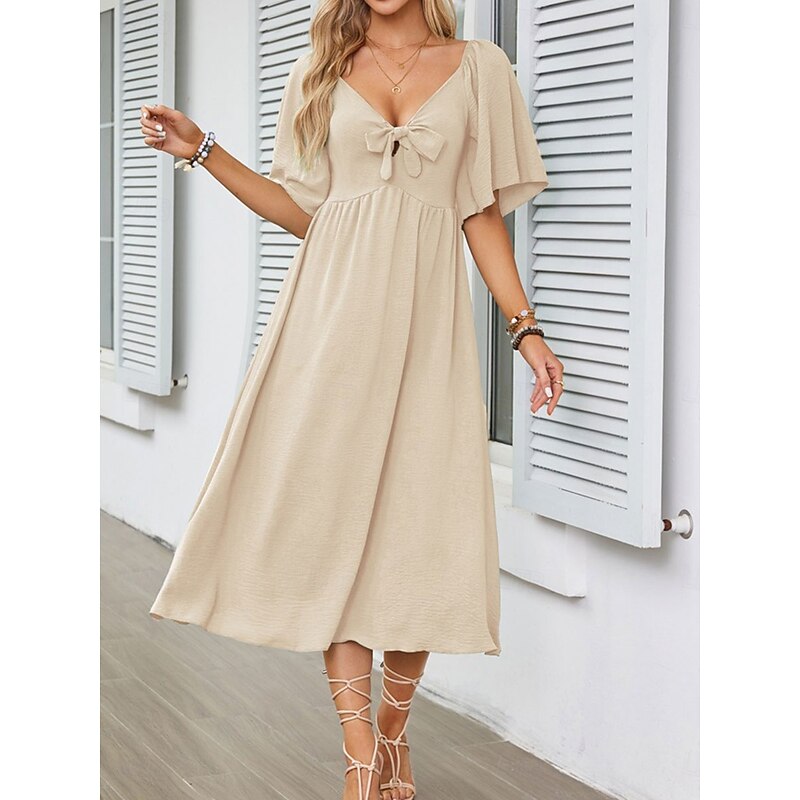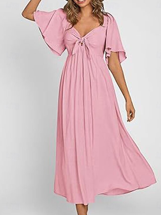 Women's Long Dress Maxi Dress Casual Dress Cocktail Dress Wedding Guest Dress Chiffon Dress Cute Stylish Casual Vacation Casual Daily Regular Fit Plain Short Sleeve V Neck White Pink Blue Apricot 14