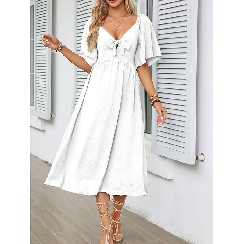 Women's Long Dress Maxi Dress Casual Dress Cocktail Dress Wedding Guest Dress Chiffon Dress Cute Stylish Casual Vacation Casual Daily Regular Fit Plain Short Sleeve V Neck White Pink Blue Apricot 9