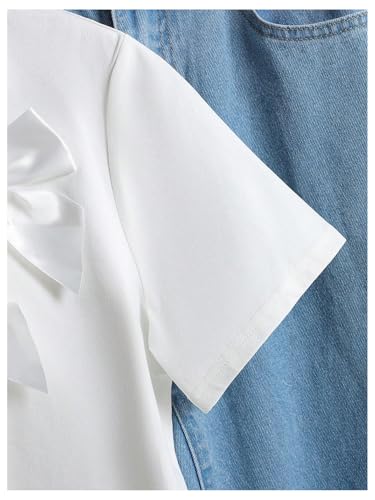 OYOANGLE Girl's Cute Bow T Shirt Short Sleeve Crew Neck Tee Shirts Solid Summer Casual Tops 1