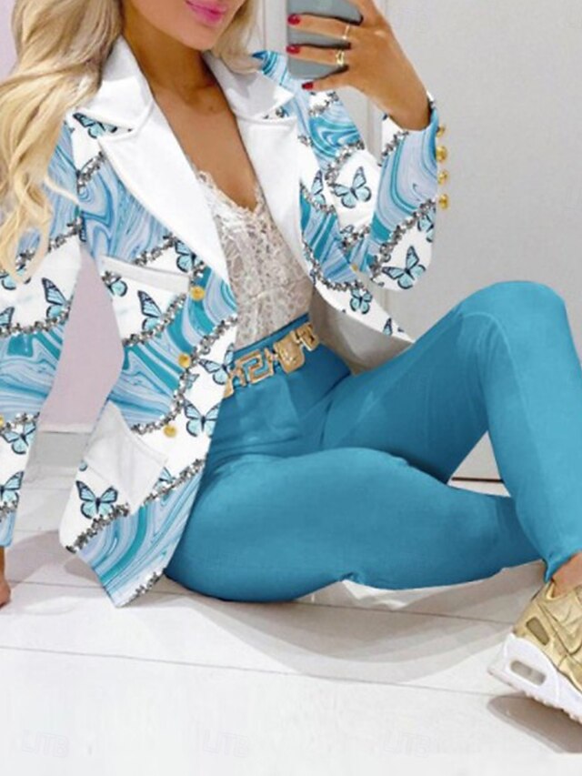 More information about Women's Streetwear Daily Blazer Chinos Long Sleeve Shirt Collar Graphic Patchwork Casual Blue Spring & Fall Regular Fit