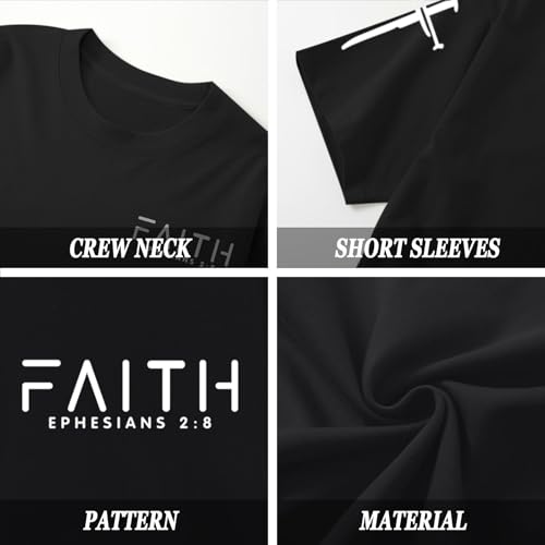• Features:christian shirts,jesus shirts for men,faith shirts,god shirts,cross shirts for men,religious shirts, the word "FAITH" is printed on the front of the inspirational t shirts, and a cross is printed on the right short sleeve