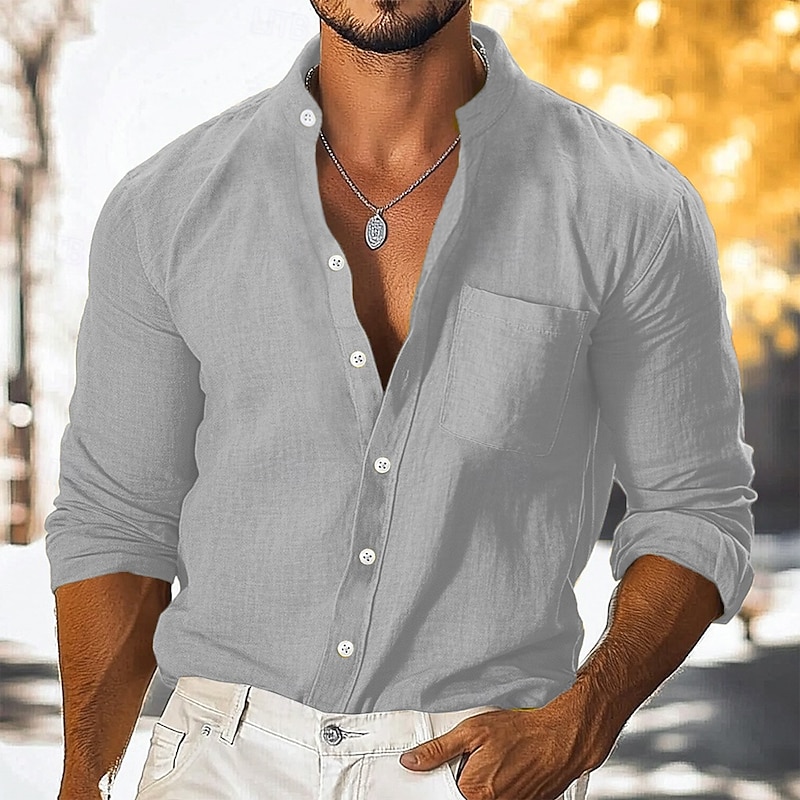 More information about Men's Shirt Linen Shirt Button Up Shirt Plain Vacation Casual Black White Yellow Navy Blue Long Sleeve Turndown Summer Fall Clothing Apparel Buttons