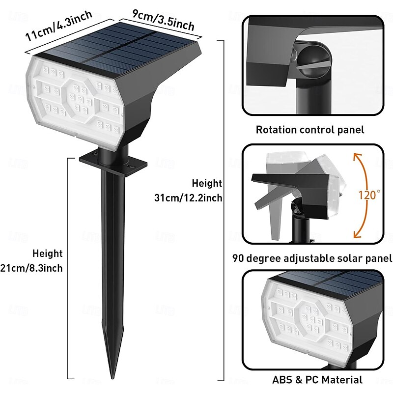 2 Pcs Outdoor Spotlights Solar IP68 Waterproof Floor Plug in Light Courtyard Garden Lawn Path Villa Tree Lighting Spotlight 56/23LED Beads Lawn Light Landscape Light 9